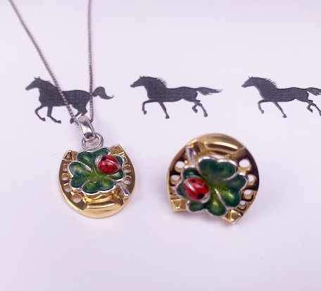 ・イタリーサツルノ社製 馬蹄に四葉クローバーとてんとう虫が付き3重の幸運のシンボルのペンダント ¥31600