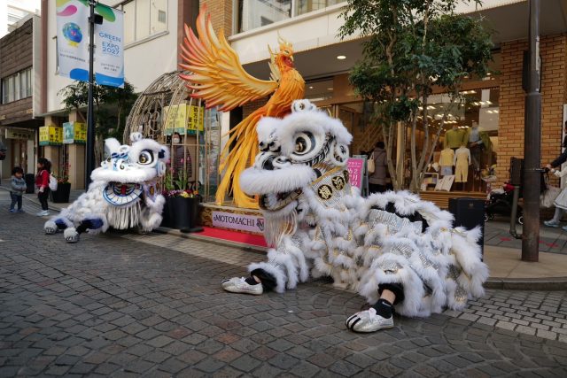 華やかで強い中華の獅子舞!中華文化において、獅子は吉祥のシンボルで、古来より「邪を祓い、福を呼び込む、神の化身」として親しまれている祈願獅子舞が元町にもきます!
