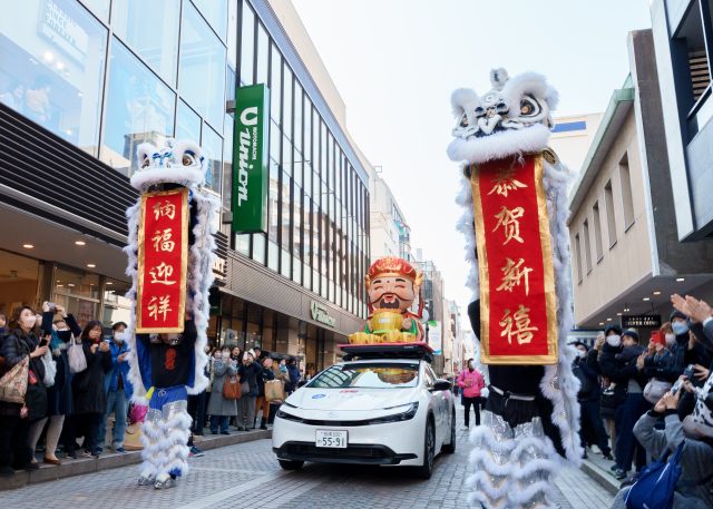 春節祭の象徴「福を振りまく財神様」が登場。鮮やかに輝く動くランタンが街を彩り、福を届けます。春節の華やぎを元町でぜひお楽しみください!