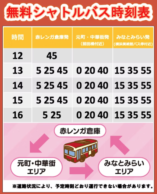 ※赤レンガ~元町間で無料シャトルバスも運行されます。